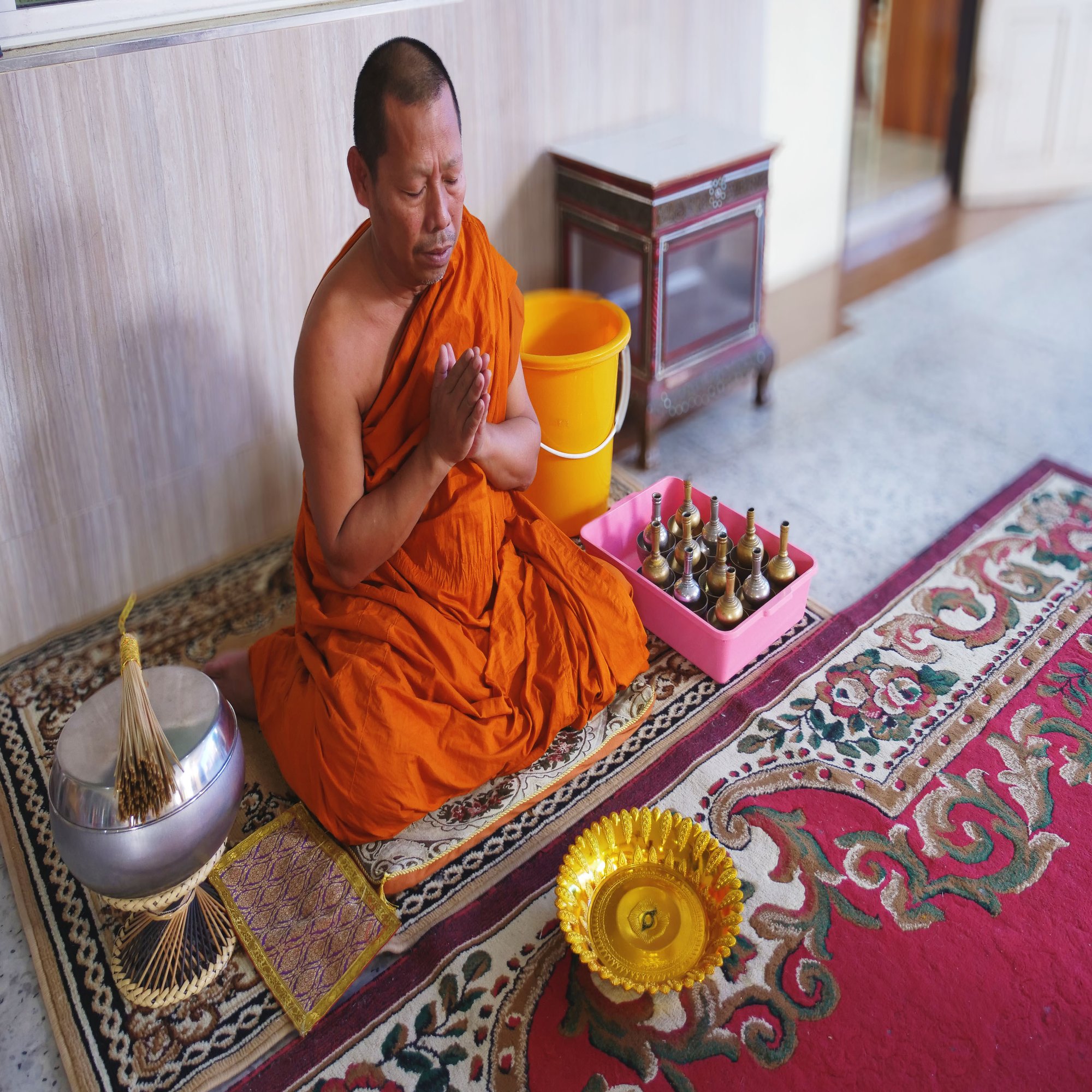 読経も半ばにさしかかったころ、「パリッタ」が誦(じゅ)されます。これは日本では「護呪(ごじゅ)」と訳される、上座仏教では日常的に読まれるお経の総称です。
