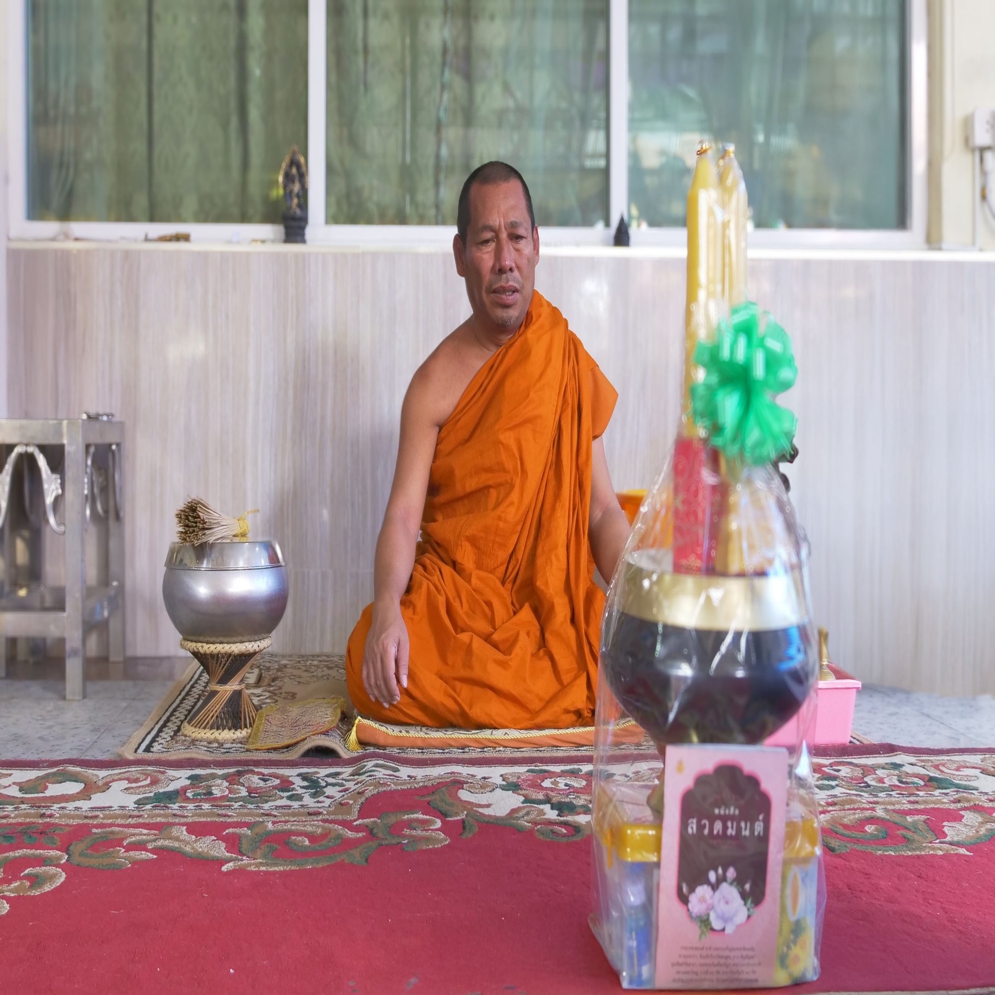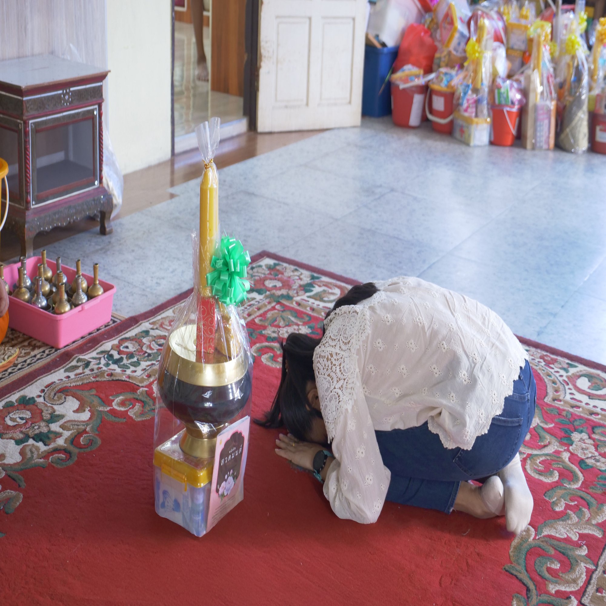 ↑タンブンを受けるワン・サンコン師(ⓒTaiga)。