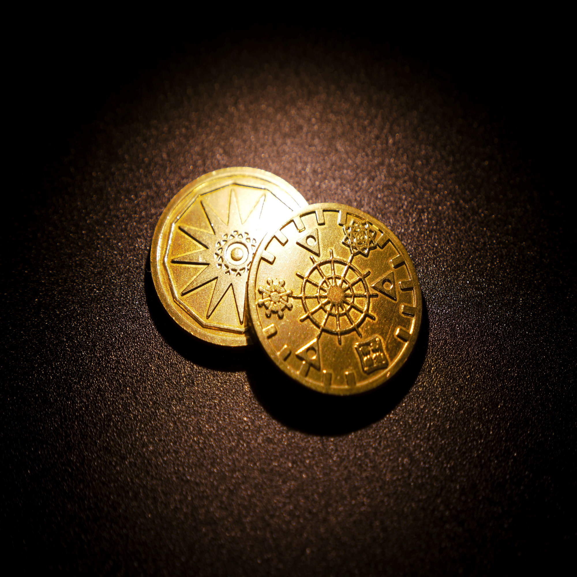 コインの中心から十二条の光が放射している。