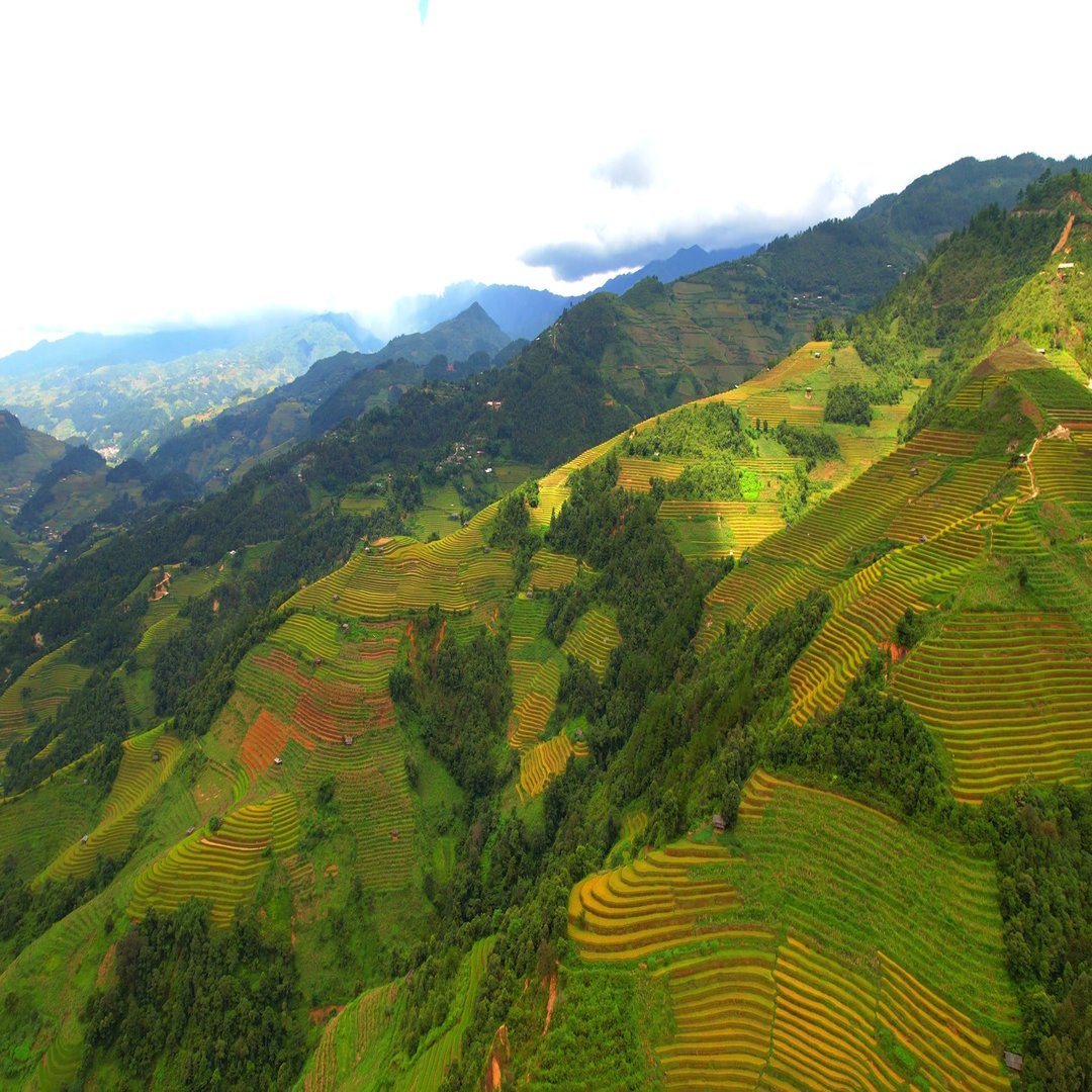 棚田のかなたに霧が立ちこめ、村ごとに香の煙がたなびく。